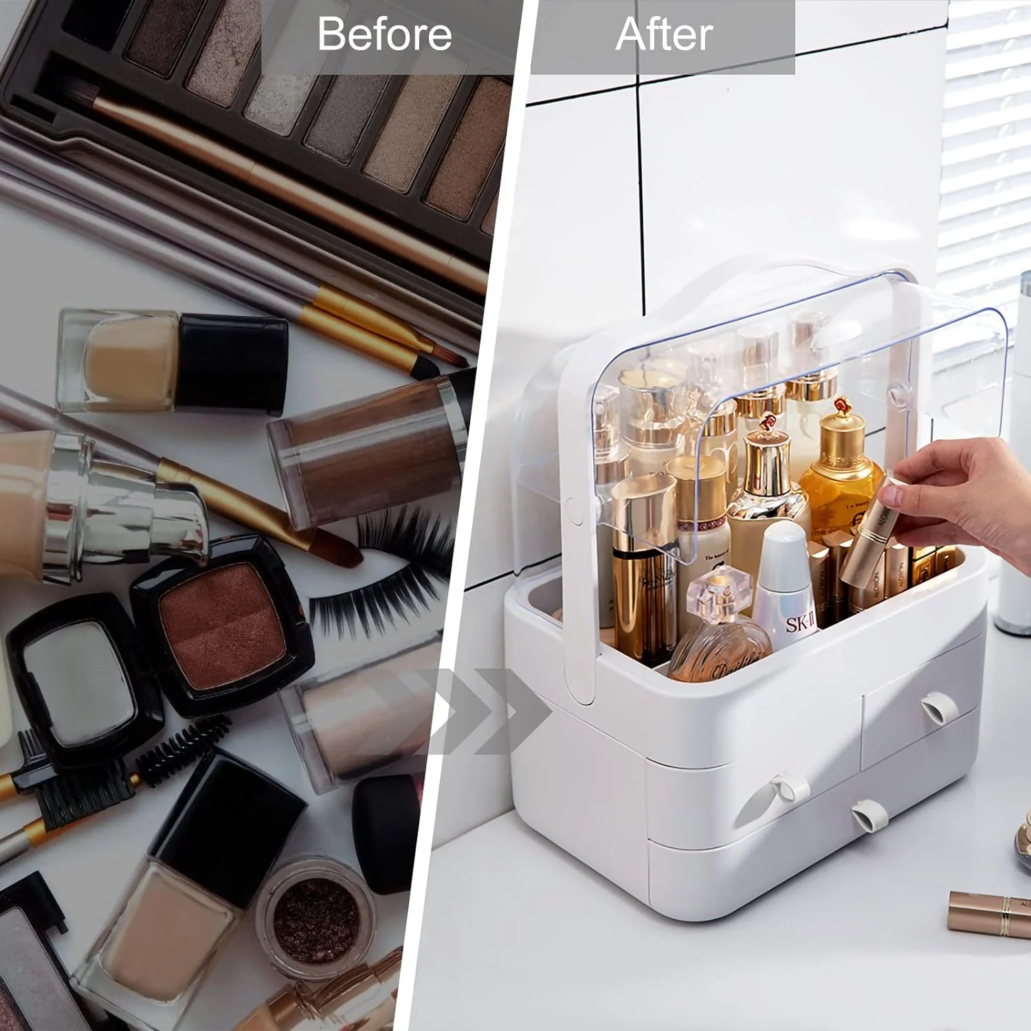 Streamline your beauty routine with this stylish and practical Makeup Organizer. Perfect for organizing makeup, skincare, and accessories in a compact, dust-proof, and waterproof design!